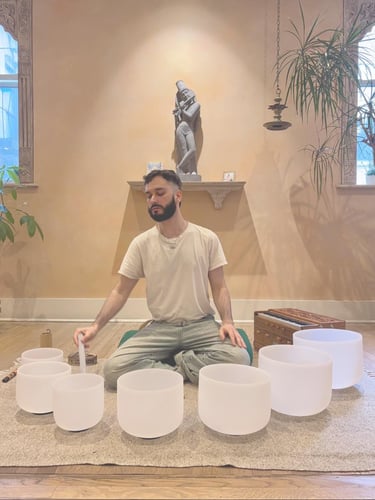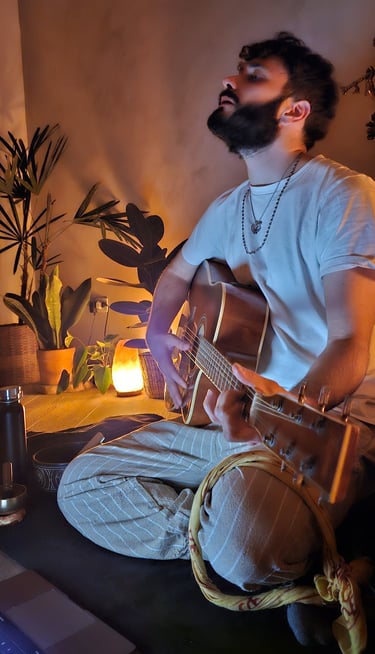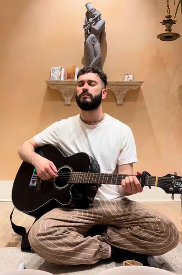 Having utilized his passion for music as a way to reach upward to the Divine, he now aims to facilitate divine communion for others via his art. As a humble service to the ideal that spiritual connection comes through engaging the voice and ears, he hopes to nourish others' hearts and guide them to access a deep subjective experience of the transcendence that exists within their own hearts.